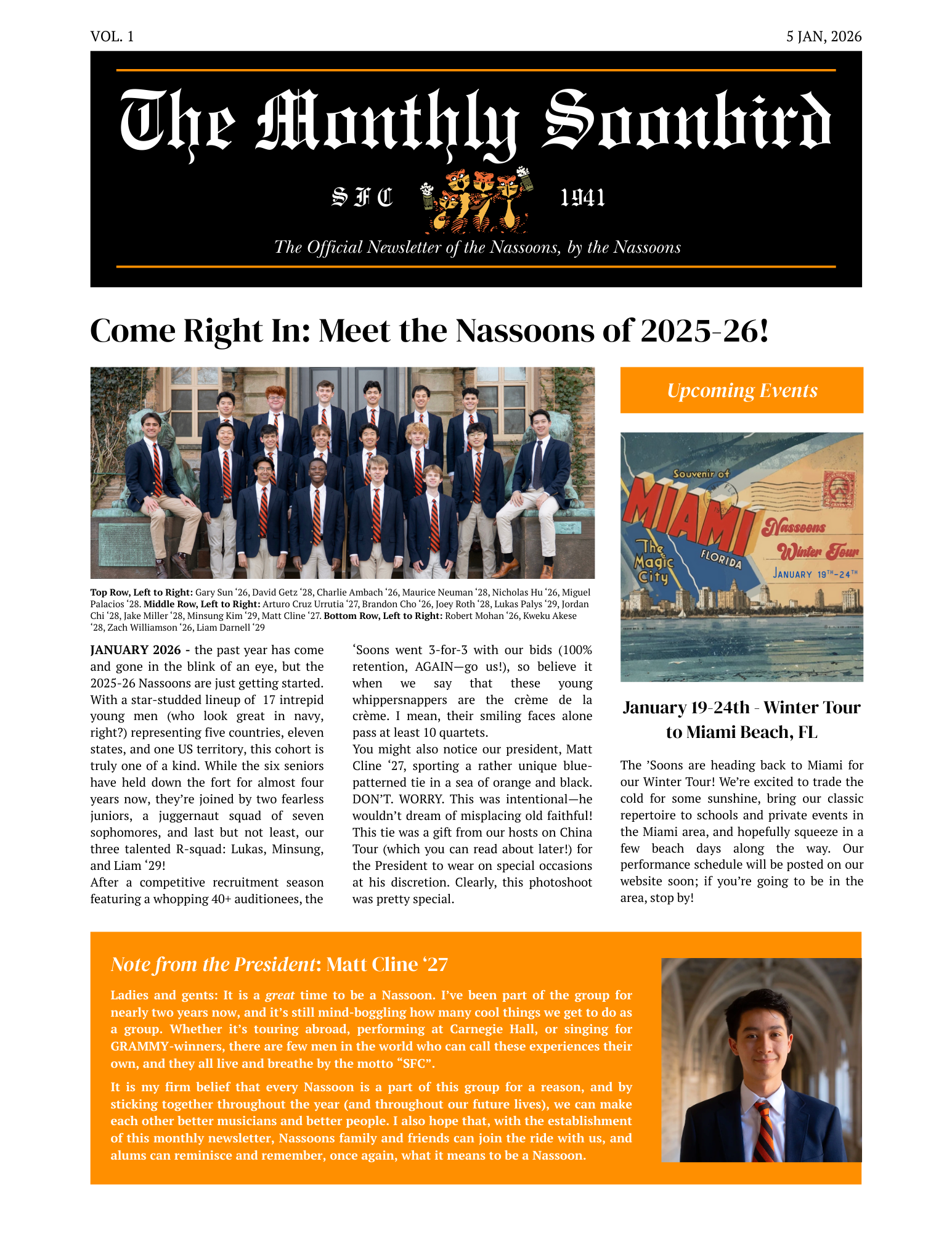 The Monthly Soonbird publishes a new issue every month, with fun new updates about the current group, alumni, and upcoming events. You can download our latest issue here, or view it directly using the embedded display below!